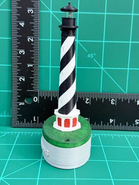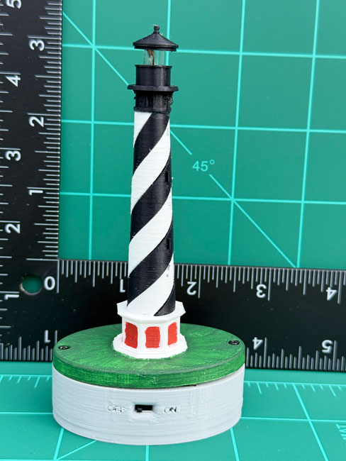 With the correct adapter, our Lighthouses are suitable for wine stoppers, night lights, and Christmas tree ornaments. Please specify what configuration you require, when ordering. The Lighthouses are semi-scale models of real world structures. Although the real life structures vary in actual height, these models are approximately the same height to facilitate their utility. The steady, bright light of a white LED provides the iconic beacon for these miniature Sentinels of the Sea. In the future we hope to add the capability of producing a the Morse Code letter which which were used to identify each lighthouse.
